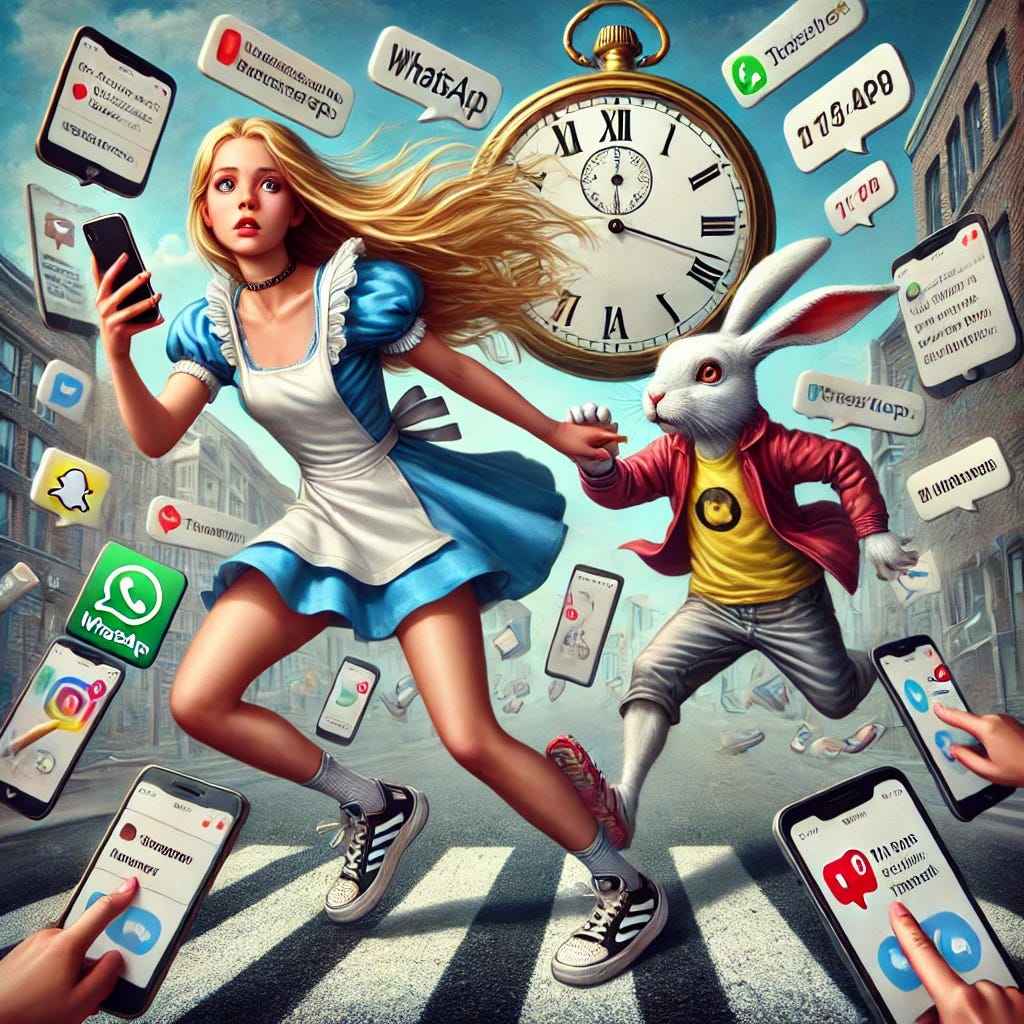 Vivemos o zeitgeist da falta. Uma ausência sem nome nos assombra, como se estivéssemos sempre atrasados para um compromisso desconhecido. Corremos como o coelho branco de Alice, olhando para o relógio, sem saber para onde vamos.